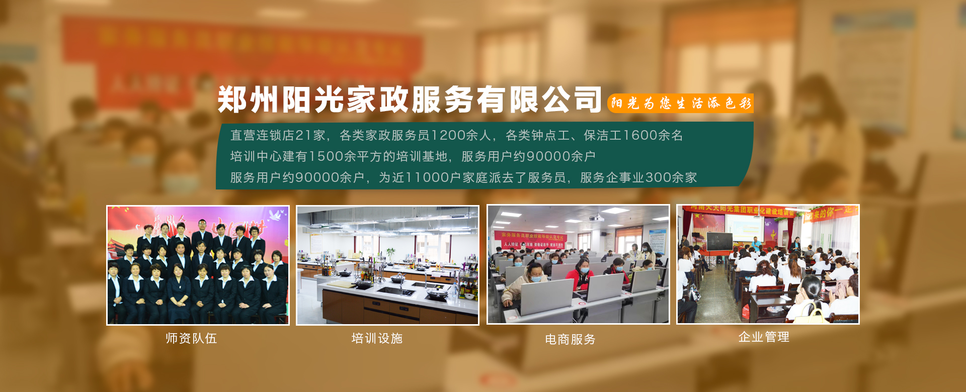 鄭州陽光家政服務(wù)有限公司成立于1998年,是鄭州市第 一家經(jīng)工商登記的家政服務(wù)企業(yè),是以家政服務(wù)、家政培訓(xùn)、社區(qū)服務(wù)、社區(qū)養(yǎng)老、托幼護(hù)理、清洗保潔為一體的社區(qū)生活服務(wù)集成商。公司有直營(yíng)連鎖店21家,各類家政服務(wù)員1200余人,各類鐘點(diǎn)工、保潔工1600余名。鄭州陽光家政商學(xué)院建有1500余平方的培訓(xùn)基地,···
